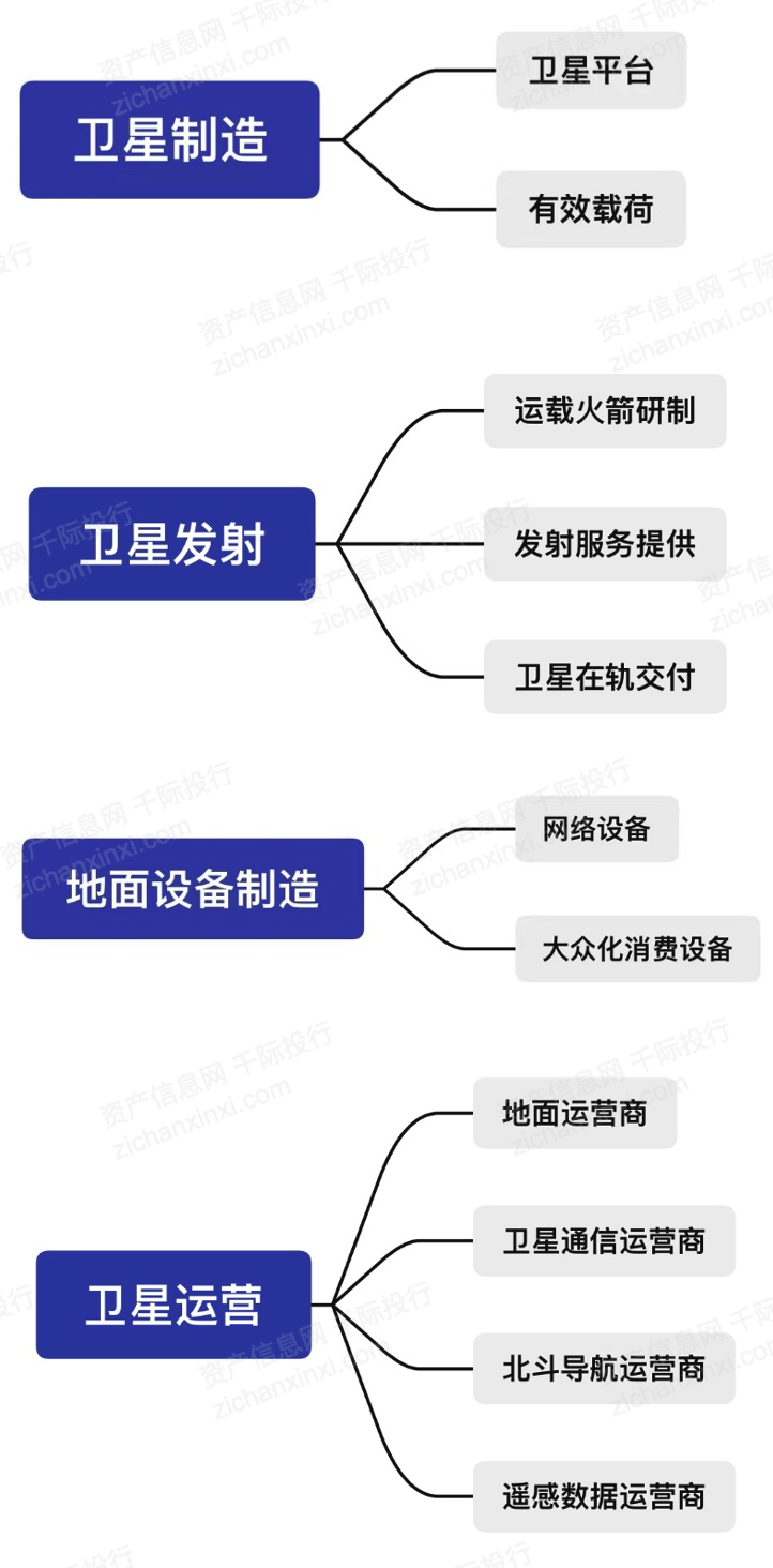 卫星互联网的产业链中游分为卫星制造、卫星发射、地面设备制造和卫星运营及服务四个环节。