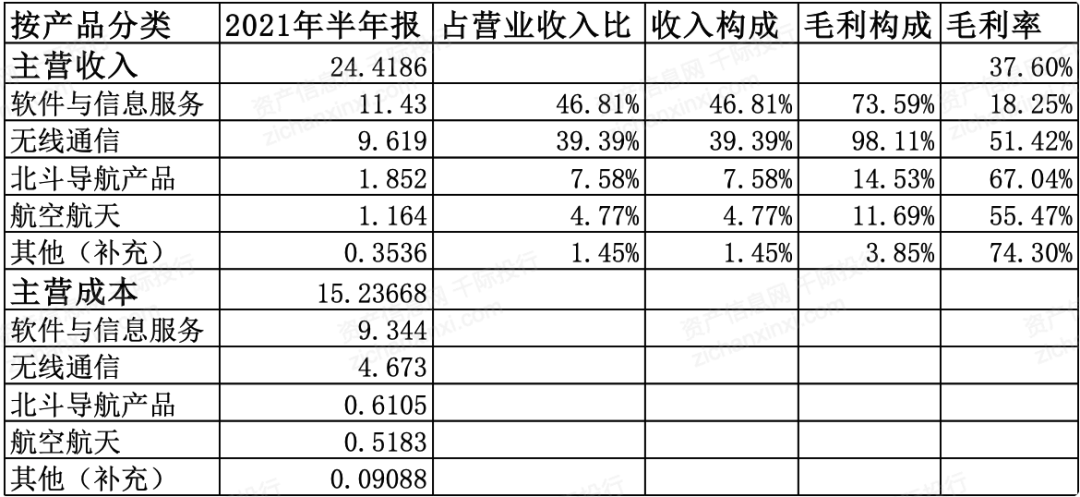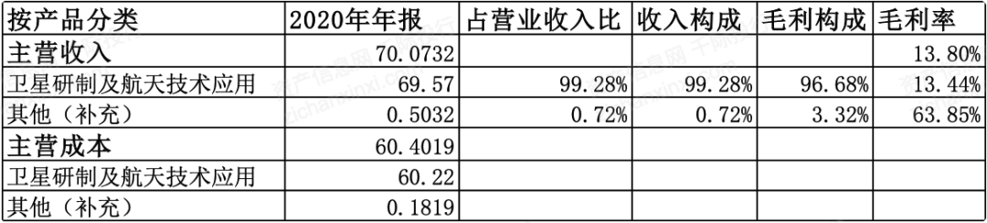 表 中国卫星(600118.SH)收入成本分析(亿元)