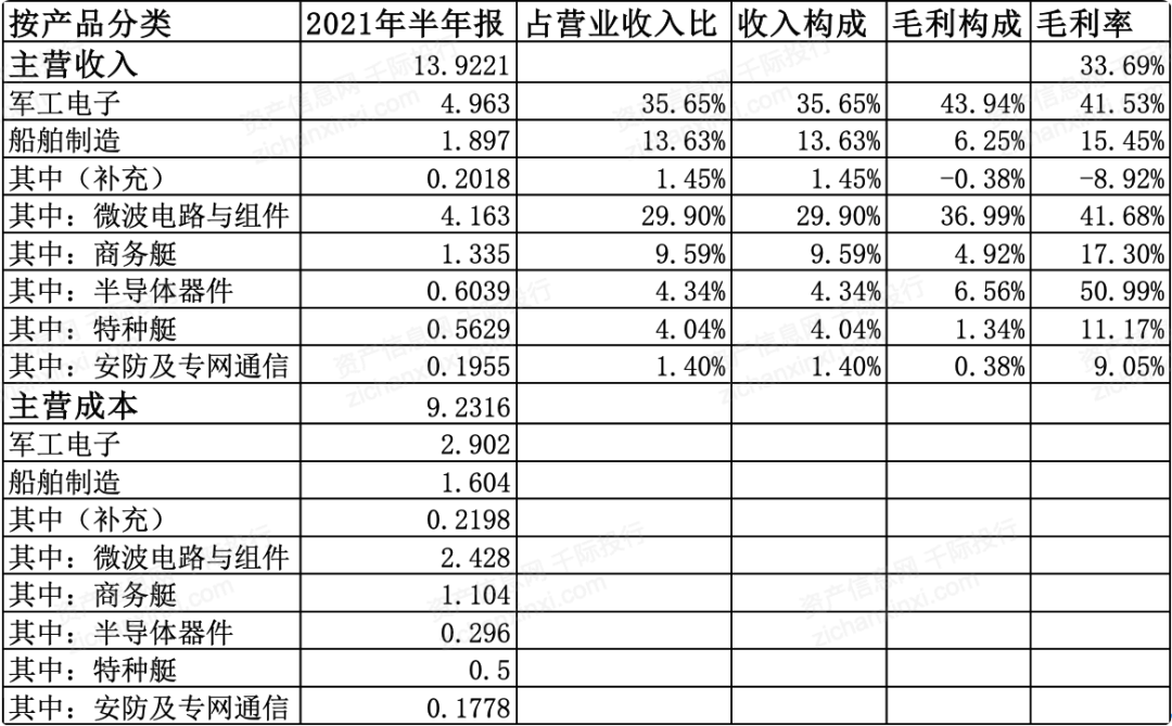 表 海格通信(002465.SZ)收入成本分析(亿元)