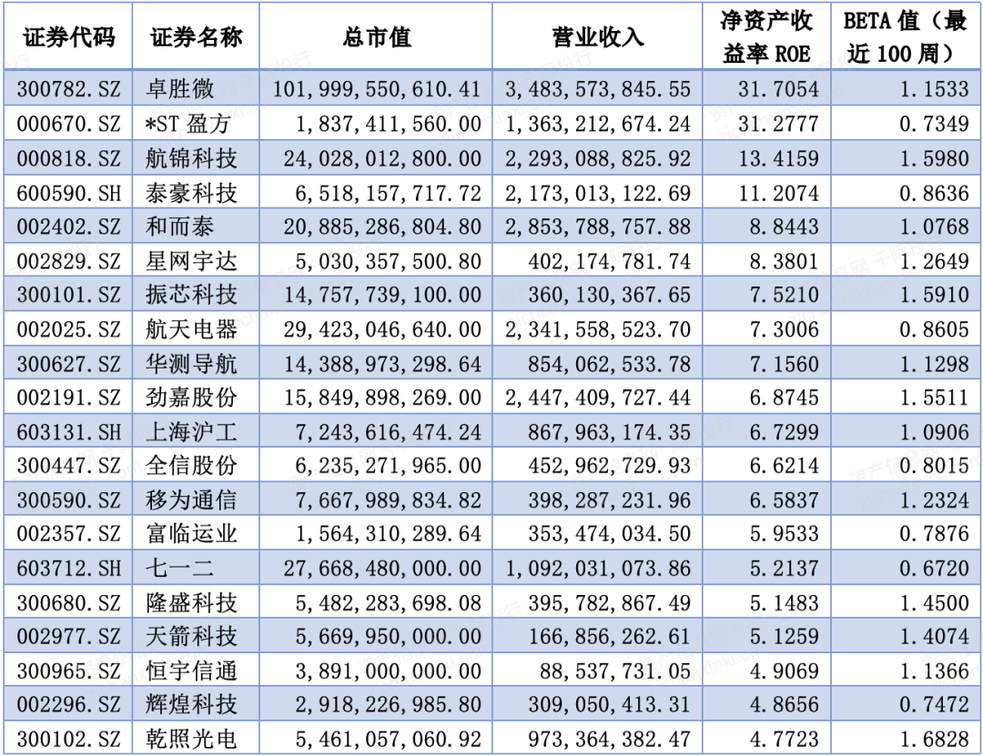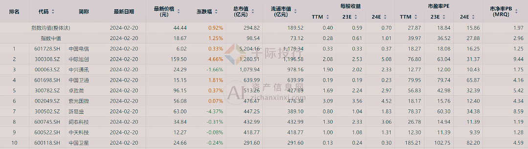 图 卫星通信指数?980018.SZ?成分股 TOP10 价值对比