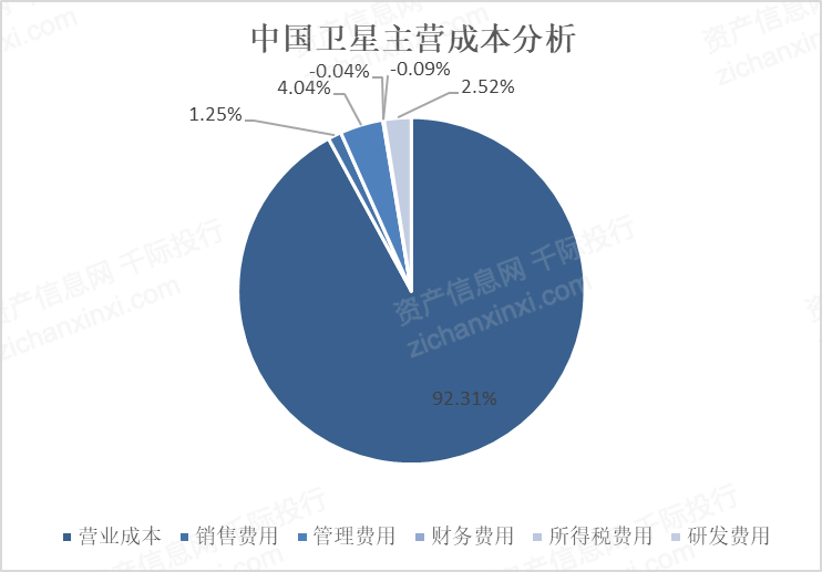 由上图可以看出,中国卫星的营业成本占比最高,高达92.31%;其余费用占比较少。