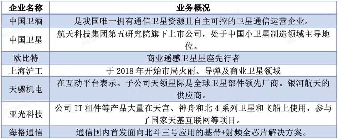 1. 中国卫星(600118.SH):中国东方红卫星股份有限公司(简称:“中国卫星”)是中国航天科技集团公司第五研究院控股的上市公司(SH.600118),是专业从事小卫星及微小卫星研制、卫星地面应用系统集成、终端设备制造和卫星运营服务的航天高新技术企业。公司注册资本11.82亿元。